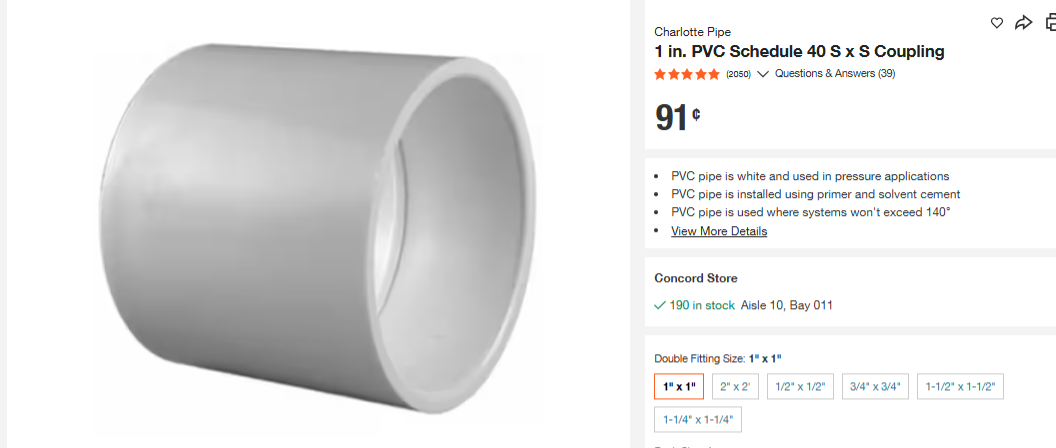 Does anyone have a link to the coupler connector needed to assemble the teamwork field? It’s not the slip connector like this is it? https://www.lowes.com/pd/Charlotte-Pipe-1-IN-SCH40-COUPLING/5005863087 The pic in the game manual doesn’t match that, but I can’t find anything that does match.